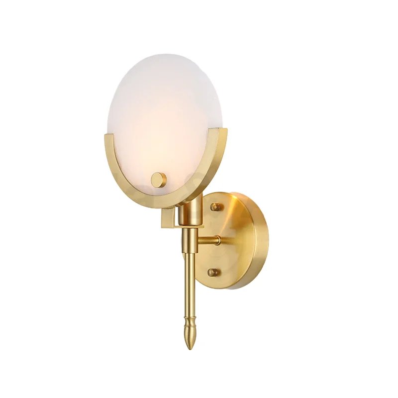Applique murale ronde en marbre naturel de style rétro, applique murale tout en cuivre noble et luxueuse, adaptée au couloir et au salon