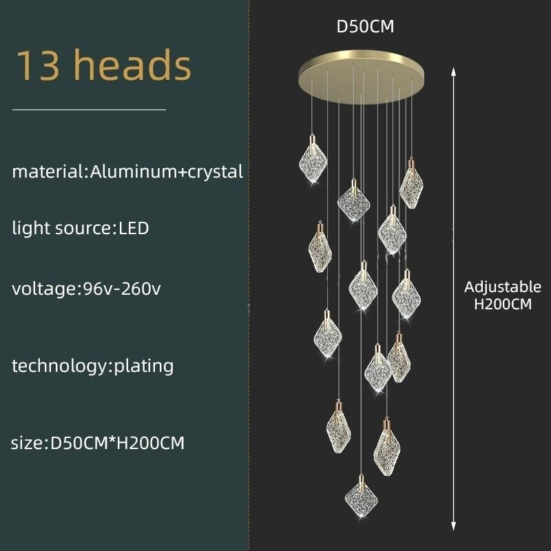Nouveau cristal salon plafond suspension décoration de la maison escalier Duplex suspension Restaurant chambre suspension éclairage